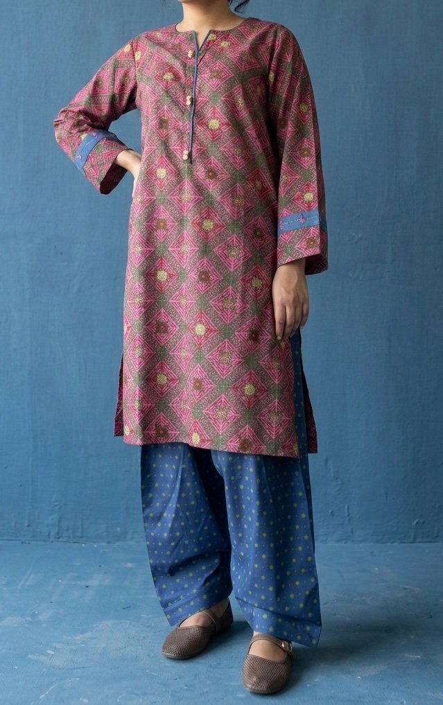 Its dotted indigo Shalwar print is contrasted to enhance the casual summer look.