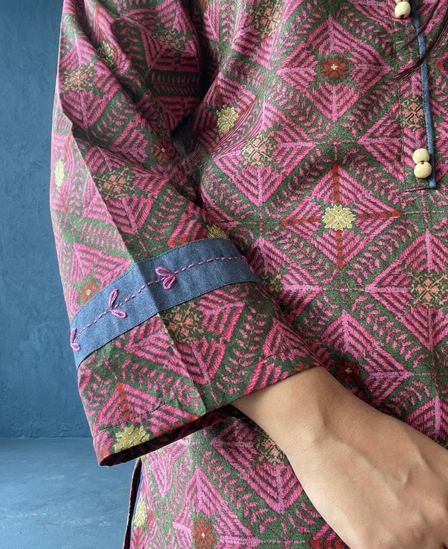 Make this burnt pink Kurta with embroidered sleeves an essential part of your daily wear.